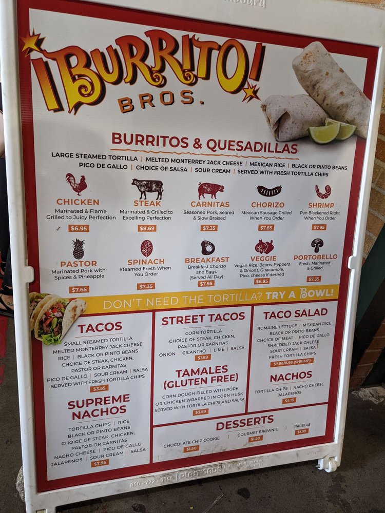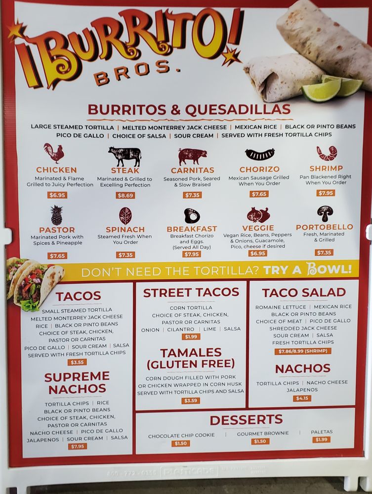 Introducing Burrito Bros, a vibrant hotspot in Kansas City for authentic New Mexican Cuisine. Located at 407 Main St, this restaurant offers a plethora of mouth-watering options from burritos to bowls. Their menu includes a variety of burritos like the Steak Burrito marinated to perfection and the Veggie Burrito for vegans. The Chicken Bowl and Chorizo Bowl are also crowd favorites. Customers rave about the generous portions, fresh ingredients, and fast service. The Street Tacos are a must-try, especially during their Taco Tuesday special. With options for all dietary preferences and a cozy atmosphere, Burrito Bros is a top choice for a delicious and satisfying meal in the heart of the river market. Don't miss out on their Happy Hour specials and tantalizing flavors that will keep you coming back for more.